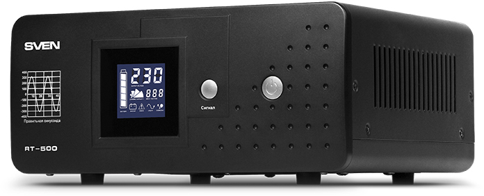 ИБП SVEN RT-500, линейно-интерактивный непрерывного действия с длительным временем резервирования, автоматический стабилизатор напряжения, 300Вт, 500Ва, 1 евророзетка, аккумуляторные батареи в комплект не входят, 300мм?270мм?140мм, 5.66 кг/ UPS SVEN RT-500, line-interactive continuous long-time backup, automatic voltage regulator, 300W, 500VA, 1 outlets, batteries not included, 300mm ? 270mm ? 140mm, 5.66 kg