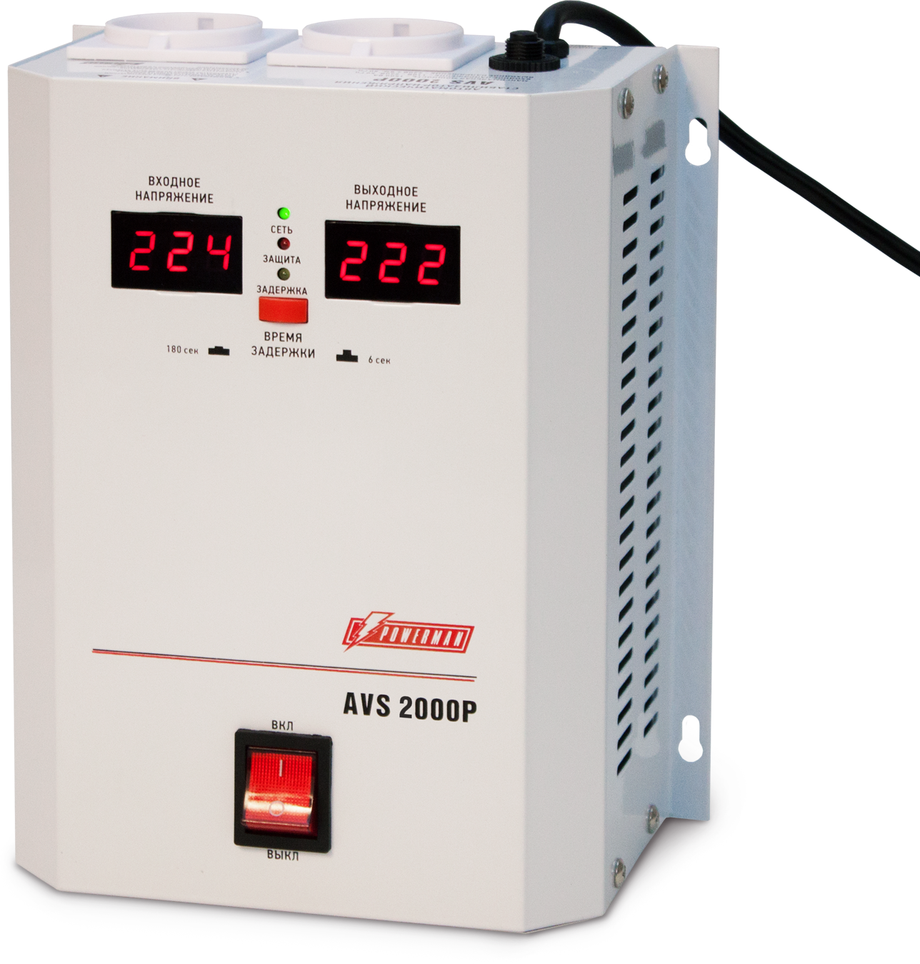 Стабилизатор POWERMAN AVS 2000P, ступенчатый регулятор, цифровые индикаторы уровней напряжения, 2000ВА, 110-260В, максимальный входной ток 15А, 2 евророзетки, IP-20, навесной, 215мм х 270мм х 110мм, 5.2 кг./ Stabilizer POWERMAN AVS 2000P, step-type regulator, digital indicators of voltage levels, 2000VA, 110-260V, maximum input current 15A, 2 eurosockets, IP-20, hinged, 215mm x 270mm x 110mm, 5.2 kg.