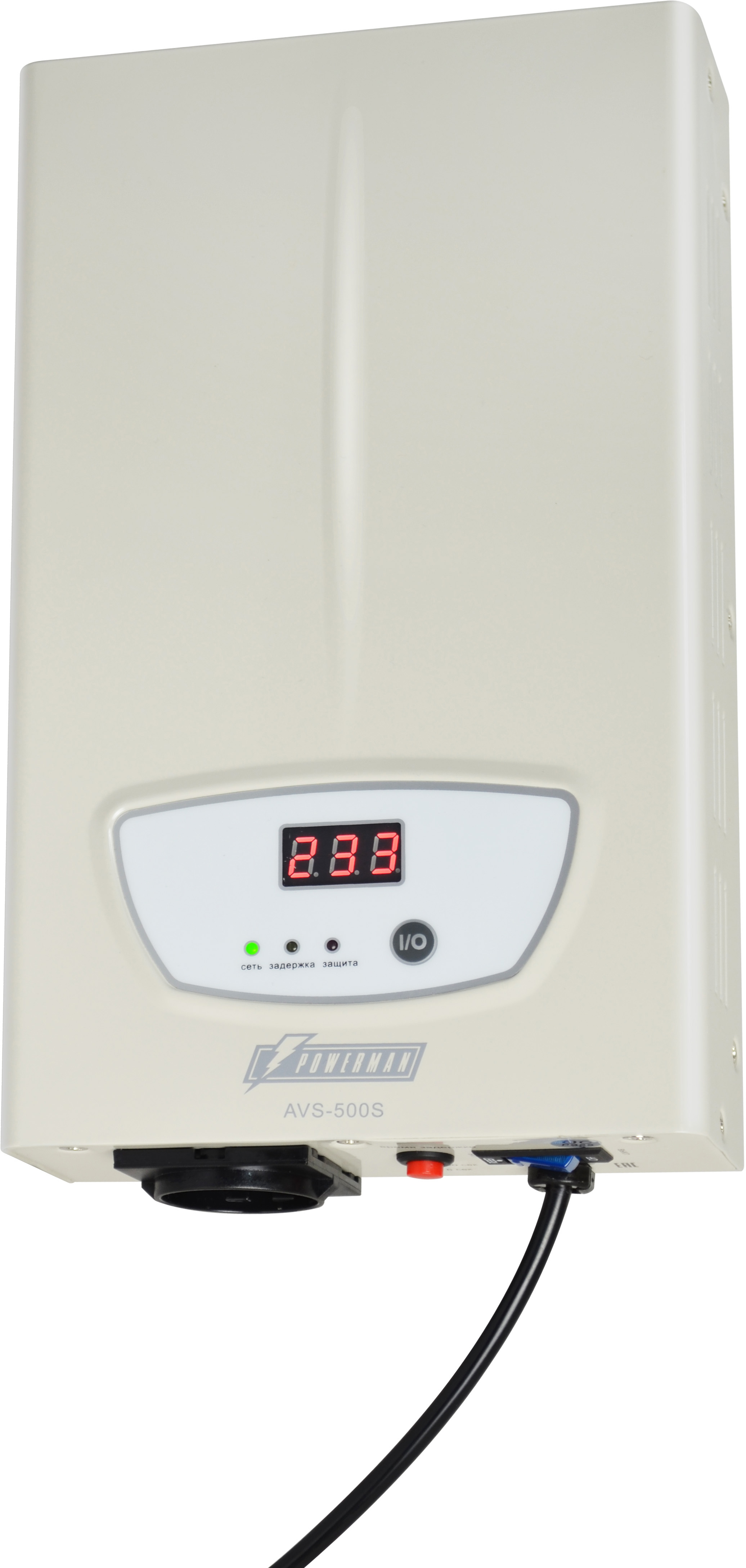Стабилизатор POWERMAN AVS 500S, ступенчатый регулятор, цифровые индикаторы уровней напряжения, 500ВА, 140-260В, максимальный входной ток 5А, 1 евророзетка, IP-20, навесного исполнения, 290мм х 175мм х 68мм, 2,42 кг./ Stabilizer POWERMAN AVS 500S, step-type regulator, digital indicators of voltage levels, 500VA, 140-260V, maximum input current 5A, 1 eurosocket, IP-20, mounted version, 290mm x 175mm x 68mm, 2.42 kg.