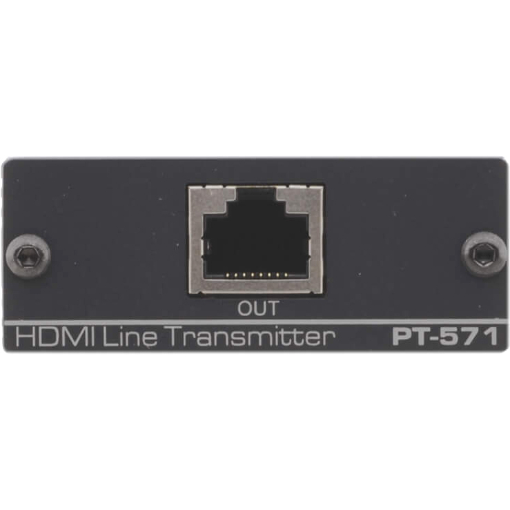 PT-571 - передатчик сигнала HDMI по кабелю на витой паре. PT-571 преобразует сигнал HDMI в формат для передачи по кабелю, PT-572+ выполняет обратное преобразование. ВНИМАНИЕ! Данные приборы работают только с кабелями экранированной витой пары (FTP или STP), разделанными на экранированные разъёмы RJ-45. Использование неэкранированных кабелей UTP не допускается. ВНИМАНИЕ! Кабели экранированной витой пары разделываются на обоих концах кабеля по одной схеме (например, EIA / TIA 568В) - т.н. "прямая" разводка. Неправильная разделка кабеля может привести к необратимому повреждению приборов. ВНИМАНИЕ! Подключение к активному оборудованию Ethernet может привести к выходу из строя всего оборудования. Для подключения используйте только совместимые приборы Kramer. максимальная скорость передачи данных 4,95 Гбит/с (1,65 Гбит/с на канал), разрешение до 1080p, UXGA (1600x1200), WUXGA (1920x1200) при 60 Гц. При максимальных разрешениях режим Deep Color не поддерживается. Для работы с Deep Color уменьшите разрешение, например, до 720р. Совместимость с HDTV. Соответствие стандартам HDCP и HDMI 1.4 (3D, Deep Color, x.v.Color, Lip Sync, HDMI Uncompressed Audio Channels, Dolby TrueHD, DTS-HD). Максимальная длина линии передачи зависит от разрешения сигнала, используемой графической платы и дисплея. Для достижения наилучших результатов рекомендуется экранированный кабель Kramer BC-UNIKAT/LSHF, при использовании которого длина линии составляет 70 м. При использовании кабелей других изготовителей указанные максимальные значения могут снижаться. Использование многожильных проводников (patch cord) в кабелях не допускается. Прозрачность для сигнала EDID. Цветовая светодиодная индикация состояния - красный цвет при включении питания, оранжевый при подключении выхода, желтый при подключении выхода и подаче входного сигнала. Система Power Connect - приемник получает питание от передатчика по тому же кабелю на витой паре, по которому передается сигнал. Малогабаритный корпус Kramer Pico TOOLS с возможностью установки четырех приборов рядом в 19-дюймовую стойку (1U) с помощью адаптера RK-4PT-B (опция).