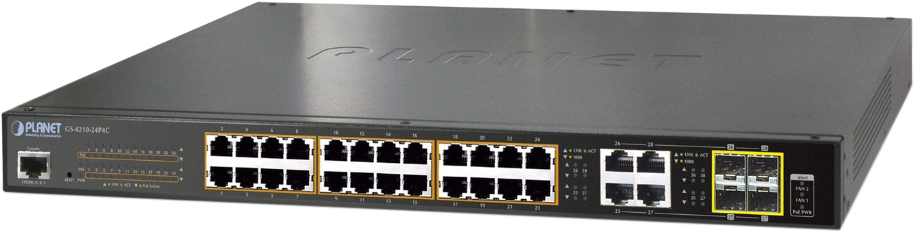 коммутатор/ PLANET IPv6/IPv4, 24-Port Managed 802.3at POE+ Gigabit Ethernet Switch + 4-Port Gigabit Combo TP/SFP (220W)