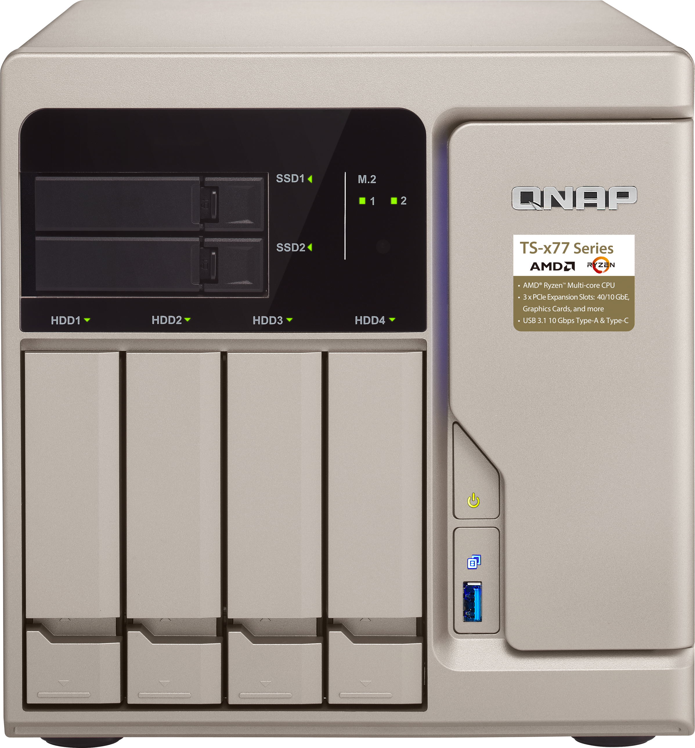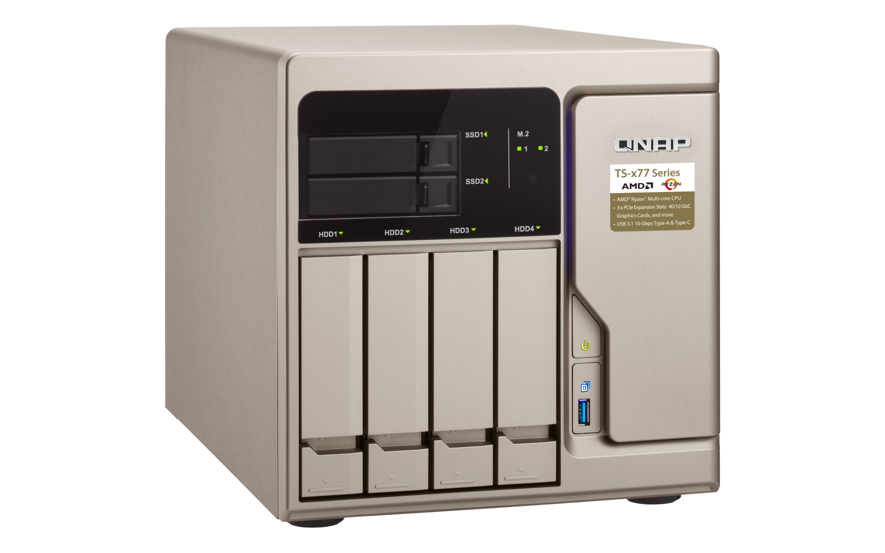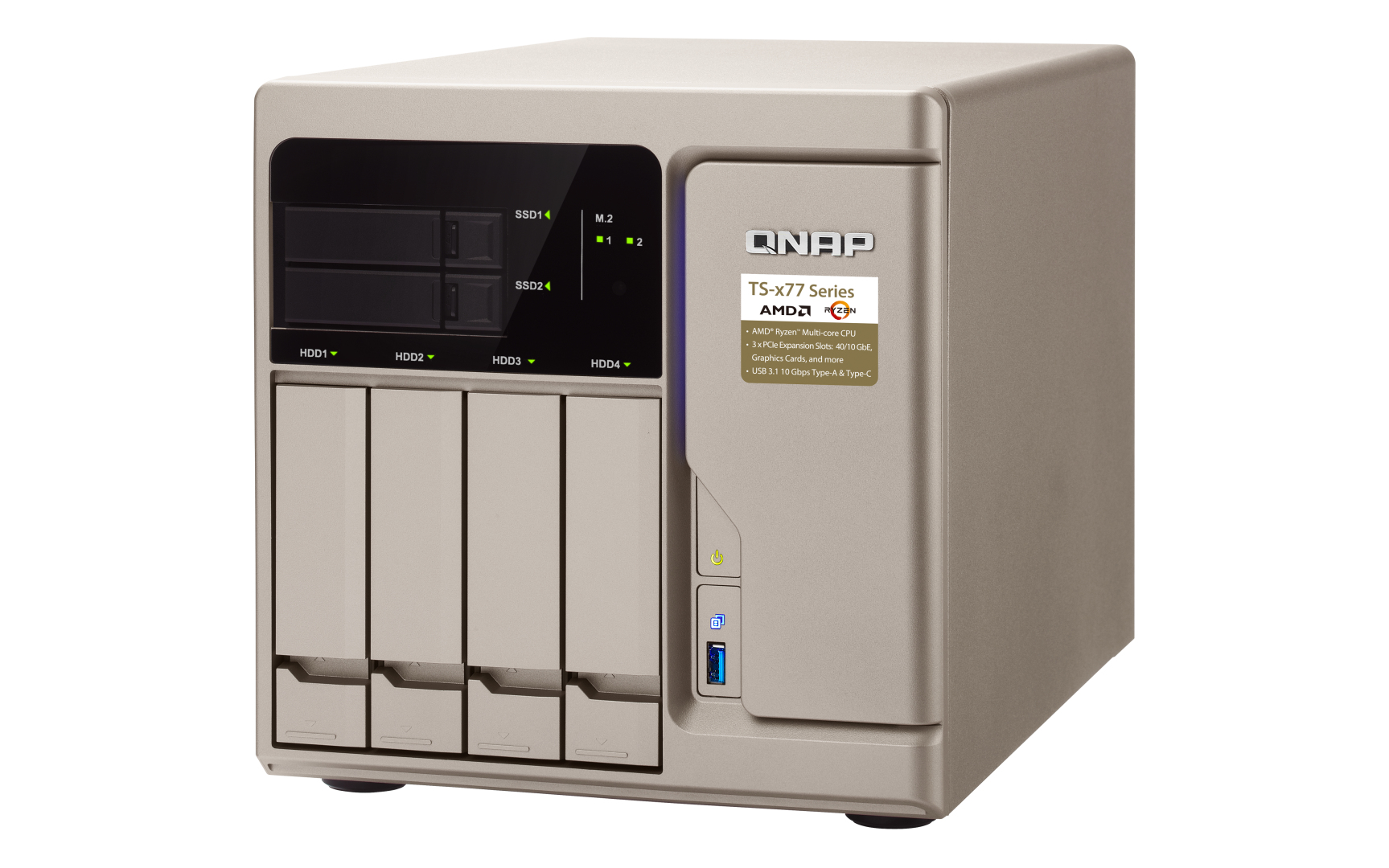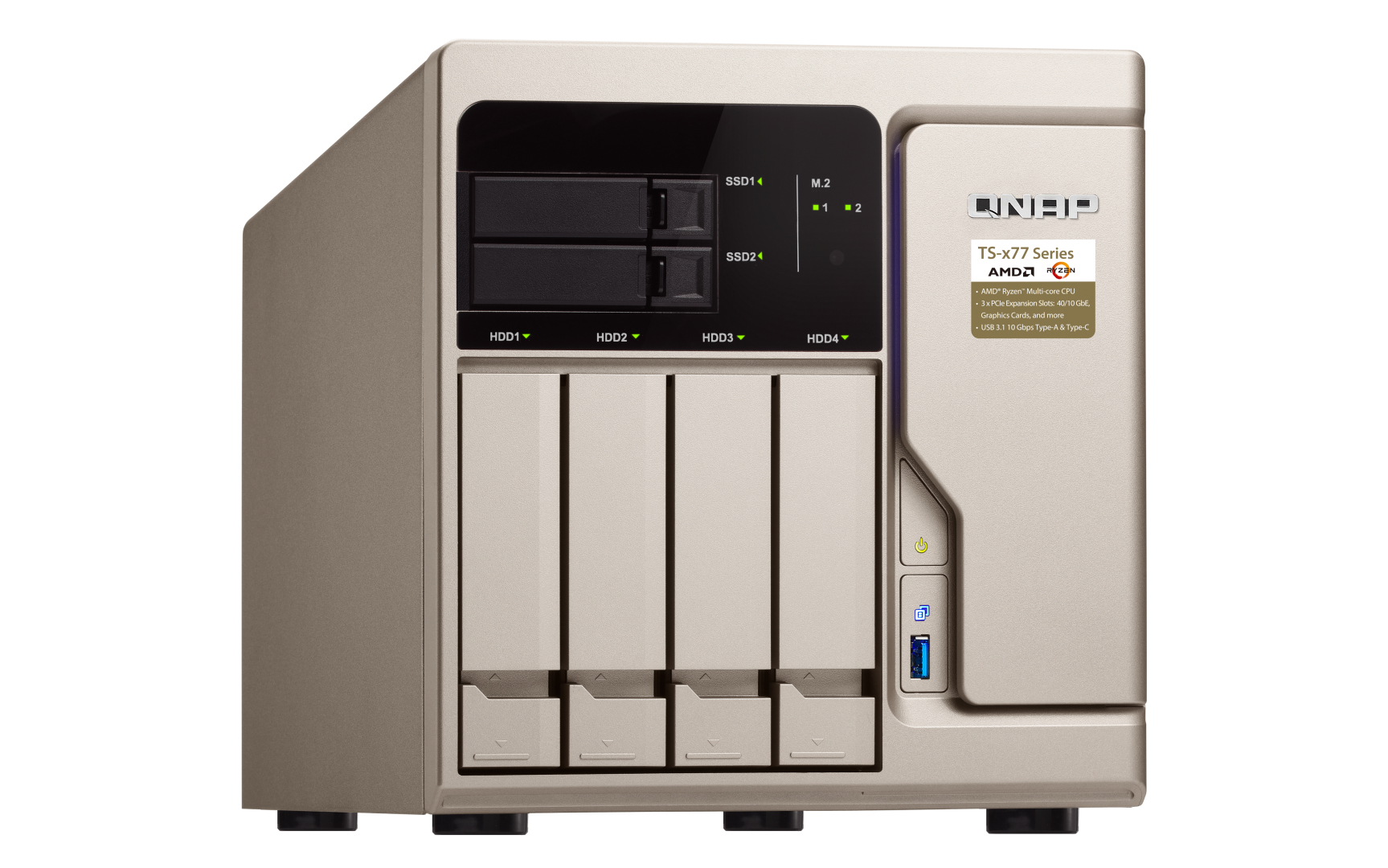 Enterprise QNAP TS-677-1600-8G 6-Bay NAS (4x 2.5"/3.5" SATA HDD/SSD + 2x 2.5" SATA SSD + 2x M.2 SATA SSD slot), AMD Ryzen 5 1600 6-core/12-thread 3.2 GHz (up to 3.6 GHz), 8GB DDR4 RAM (2 x 4 GB) up to 64GB RAM(4 x 16 GB), 4xGbE LAN