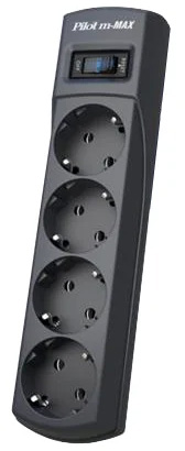 Сетевой фильтр Pilot m Max 4 розетки (евро с заземлением), 15А/3.3кВа, автомат, 1.8 м, графит/ Surge protector Pilot m Max 4 euro outlets, 15А/3.3кВа, 1.8m, grafit
