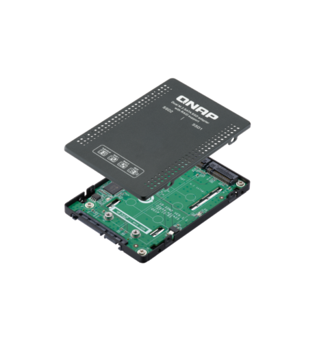 QDA-A2MAR вмещает два SSD M.2 SATA в одном дисковом отсеке SATA 2,5-дюймов. Адаптер устанавливается без драйверов на ПК под управлением Windows/Linux или QNAP NAS для добавления дополнительных жестких дисков или твердотельных накопителей.