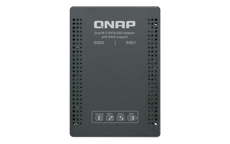 QNAP QDA-A2MAR HDD/SSD drives adapter 2 x M.2 2280 SATA SSD -> 1 x SATA 2.5" , Transfer rate 6 Gb/s. Supports RAID 0, 1, JBOD. w/o HDD