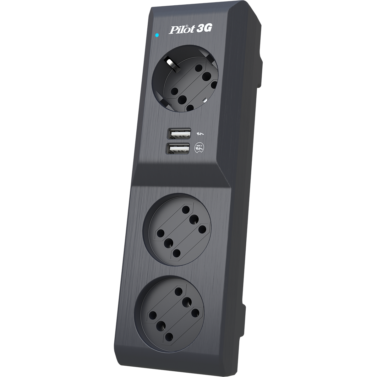 Сетевой фильтр/ Surge protector Pilot 3G 3xGP euro outlets, 10А/2.2кВа, 2xUSB, 3m, grafit