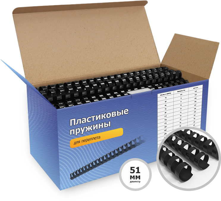 Пластиковые пружины 51 мм черные 50 шт./ Пружины пластиковые 51 мм черные (410-500 листов) 50 шт, ГЕЛЕОС [BCA4-51B]