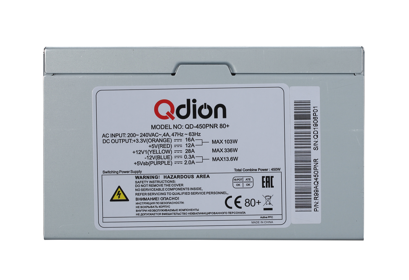 Блок питания 450Вт/ Power Supply FSP QDION ATX 450W, 120mm, 5xSATA, 1xPCI-E, APFC, 80+