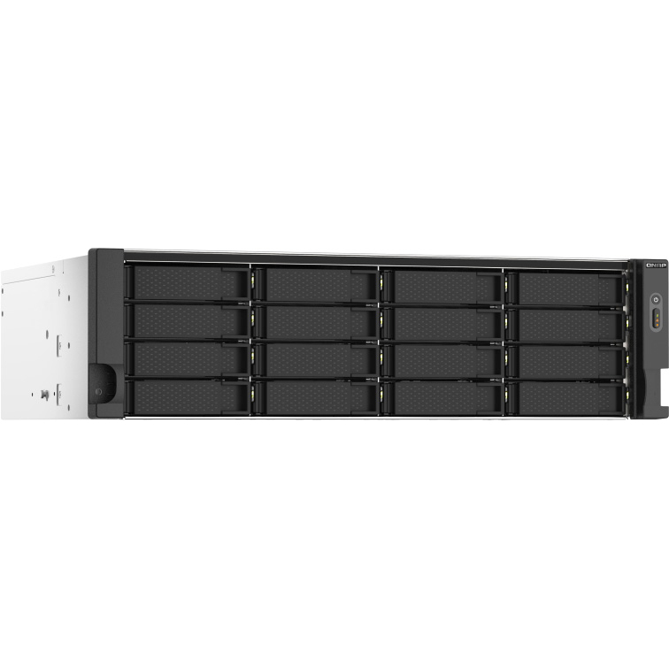 SMB QNAP TS-1673AU-RP-16G NAS 16 HDD trays, 2x 2.5 GbE, rackmount, 2 PSU. 4-core AMD V1500B 2,2 GHz,,RAM 16 GB (1 x 16 GB) up to 32 GB (2 x 16 GB). W/o rail kit RAIL-B02