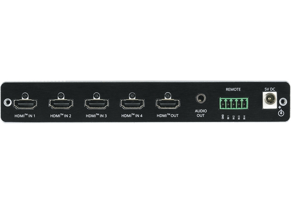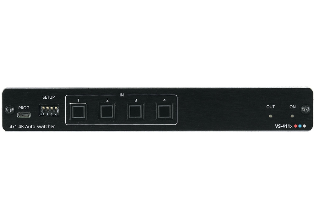 VS-411X – коммутатор 4х1 сигналов HDMI разрешением до 4K/60 (4:4:4) c поддержкой HDCP 2.2, EDID и CEC, деэмбеддирование аналогового стерео (miniJack 3,5 мм) с автоматическим переключением по наличию сигнала или по заданному приоритету. Управление устройством осуществляется переключателями на задней панели, «сухими» контактами. Автоматическая коммутация по различным сценариям: согласно пользовательскому приоритету или на последний подключенный вход Ручное переключение входов работает поверх автоматического Поддержка HDMI 2.0 Соответствие HDCP 2.2 Поддержка Deep Color, x.v.Color™, 3D, CEC, Lip Sync, вложенного несжатого цифрового аудио, аудиоформатов Dolby TrueHD и DTS-HD До 32 каналов цифрового несжатого стереозвука Технология I-EDIDPro™ Kramer Intelligent EDID Processing™ позволяет работать с HDMI-устройствами в режиме Plug&Play Деэмбеддированное аудио на выходе в небалансное стереоаудио и параллельное воспроизведение аудиосигнала на выходе HDMI Управление при помощи кнопок на передней панели и «сухих» контактов Светодиодная индикация питания и наличия сигнала Компактный безвентиляторный корпус DemiTOOLS® При установке в 19″ стойку при помощи опционального адаптера Kramer, в слот 1U помещается до двух приборов в таком корпусе