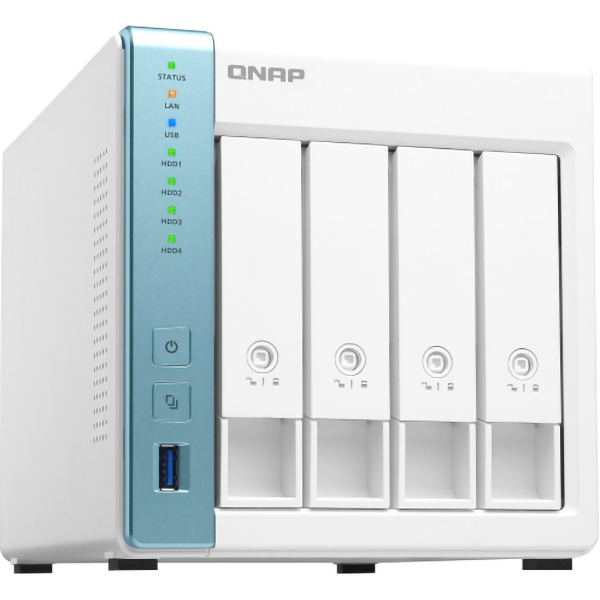 SMB QNAP TS-431K NAS 4 HDD trays. Alpine AL214, 4-core, 1.7GHz, 1 GB RAM, 2xGB Ethernet, USB 3.2x3
