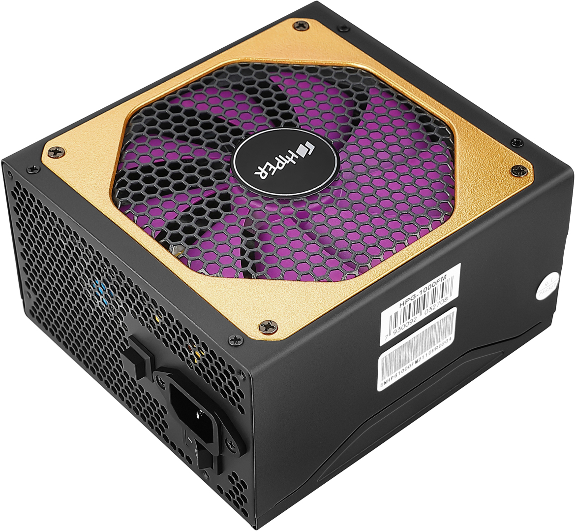 блок питания для ПК 1100 Ватт/ PSU HIPER HPG-1100FM (1100W 80+Gold, 14cm Fan, 220V input, Efficiency 90%, Modular, Black) BOX