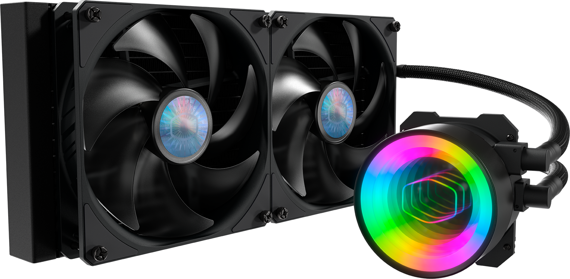 Cooler Master MasterLiquid ML280 Mirror (240W, 280mm, ARGB, fans: 2x140mm/67CFM/27dBa/1400rpm, 2066/2011-v3/2011/1200/1156/1155/1151-v2/1151-v1/1150/AM4/AM3+/AM3/AM2+/AM2/FM2+/FM2/FM1)