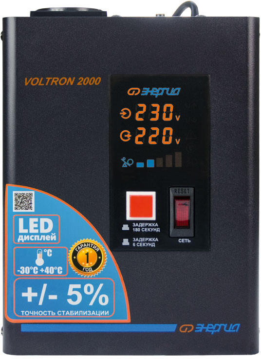 Серия Voltron – универсальные стабилизаторы напряжения для любой техники в доме. Надёжные (усиленные вольфрамовые контакты реле), неприхотливые (могут быть установлены в неотапливаемых помещениях), обеспечивают высокую точность стабилизации (5%) с высокой скоростью срабатывания при резких перепадах напряжения.Стабилизаторы отличаются широким диапазоном входного напряжения – от 80 до 280 вольт, что позволяет получать стабильное напряжение даже в самых проблемных электросетях.Термодатчик, встроенный в обмотку трансформатора, повышает защиту от перегрева.Благодаря отсутствию в конструкции стабилизаторов подвижных элементов, их можно эксплуатировать в условиях низких температур.Универсальный способ крепления позволяет устанавливать стабилизаторы как на горизонтальную поверхность, так и повесить на стену.