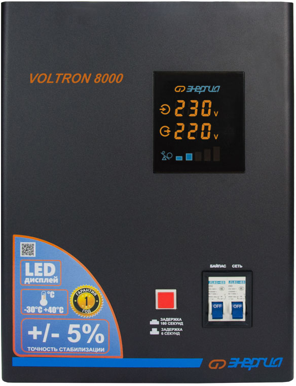 Серия Voltron – универсальные стабилизаторы напряжения для любой техники в доме. Надёжные (усиленные вольфрамовые контакты реле), неприхотливые (могут быть установлены в неотапливаемых помещениях), обеспечивают высокую точность стабилизации (5%) с высокой скоростью срабатывания при резких перепадах напряжения.Стабилизаторы отличаются широким диапазоном входного напряжения – от 80 до 280 вольт, что позволяет получать стабильное напряжение даже в самых проблемных электросетях.Термодатчик, встроенный в обмотку трансформатора, повышает защиту от перегрева.Благодаря отсутствию в конструкции стабилизаторов подвижных элементов, их можно эксплуатировать в условиях низких температур.Универсальный способ крепления позволяет устанавливать стабилизаторы как на горизонтальную поверхность, так и повесить на стену.