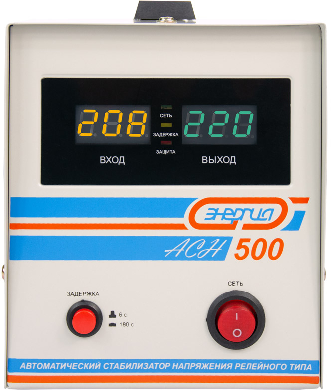 Релейный однофазный стабилизатор напряжения переменного тока предназначен для стабилизации переменного напряжения в сети электроснабжения для потребителей бытового и аналогичного назначения. Изделие относится к классу автотрансформаторных стабилизаторов со ступенчатым регулированием напряжения путем переключения отводов силового автотрансформатора с помощью электромеханических силовых реле, таким образом стабилизаторы Энергия АСН регулируют напряжение по релейному принципу.