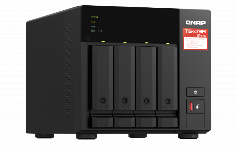 Благодаря мощному четырехъядерному процессору AMD Ryzen ™ V1000 серии V1500B с тактовой частотой 2,2 ГГц и восемью потоками TS-473A способен обеспечить высокую производительность виртуальных машин. TS-473A оснащен двумя портами 2,5 Гбит/c и двумя слотами PCIe Gen 3, что обеспечивает высокую скорость сетевого подключения, возможность расширения функций и возможностей приложений. Два слота для SSD M.2 NVMe позволяют использовать технологии Qtier и SSD-кэширования для увеличения скорости доступа к данным. TS-473A поддерживает две операционные системы QNAP - QTS и QuTS hero это позволяет выбрать оптимальное решение под задачи заказчика.