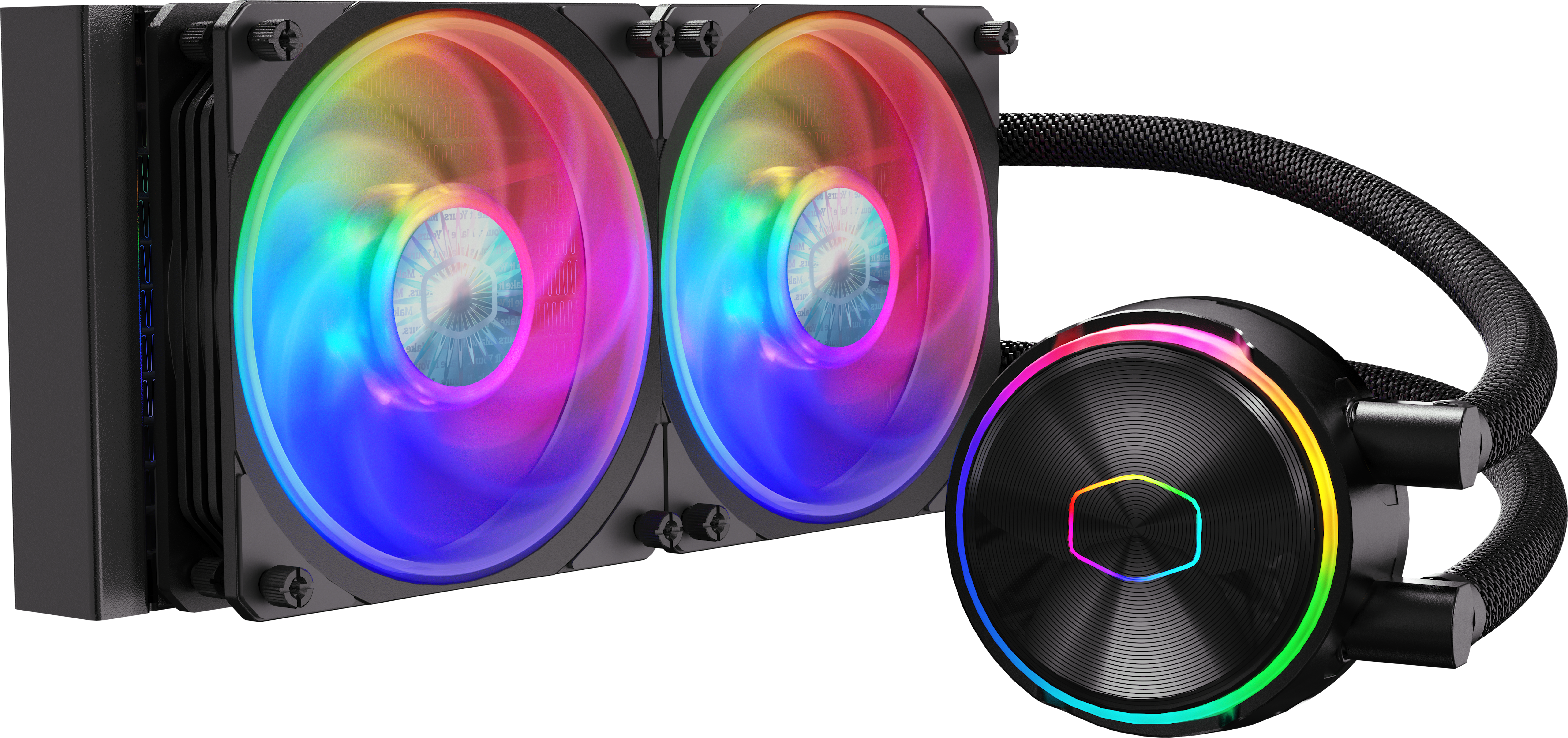 Система охлаждения/ Cooler Master MasterLiquid PL240 Flux (240W, 240mm, ARGB, fans:2x120mm/72.37CFM/32dBa/2300rpm, 1700/1200/115X/2066/2011-V3/2011/AM5/AM4/AM3/AM3+/AM2/AM2+/FM2/FM2+/FM1/TR4)