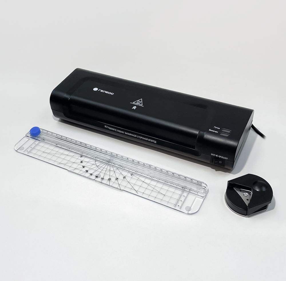 Ламинатор ГЕЛЕОС ЛМ A4 Комбо,  А4, 2х150 (пленка 75-150мкм), 300 мм/мин, 2 вала, пласт. корпус, мах толщина 0,6мм, разжим валов, + резак, обрезчик углов и стартовый набор пленок