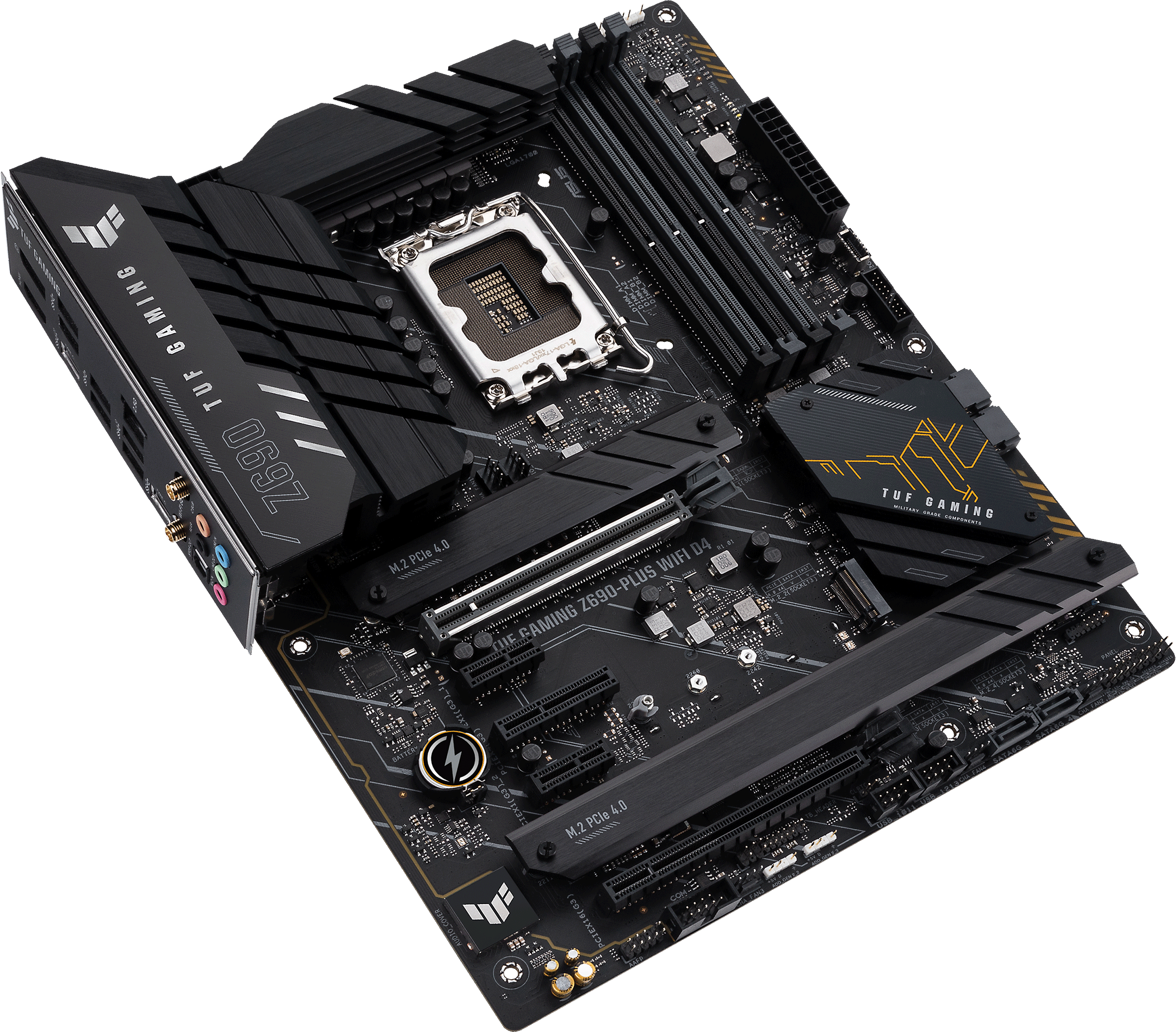Материнские платы серии TUF Gaming – это высоконадежные устройства, созданные и протестированные для работы в особо сложных условиях. Благодаря отборной элементной базе, усиленной системе питания и продуманному охлаждению они обеспечат максимальную стабильность компьютера во время марафонских игровых сессий. Модель TUF Gaming Z690-PLUS WIFI D4 несет на себе новый логотип, отражающий строгий лаконизм и функциональную практичность всей серии.