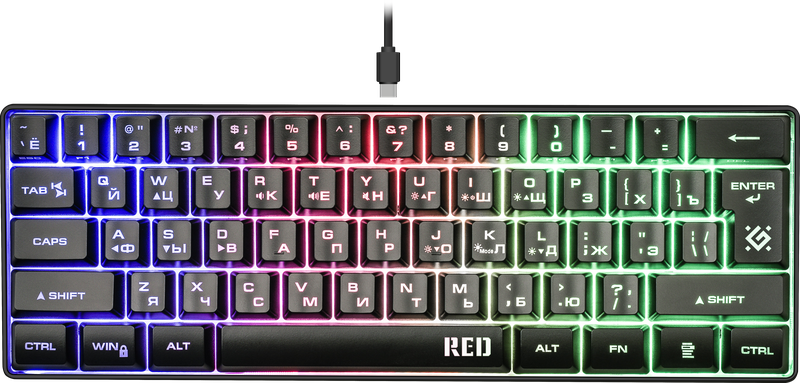 Defender Проводная игровая клавиатура Red GK-116 RU,радужная подсветка,61кнопка