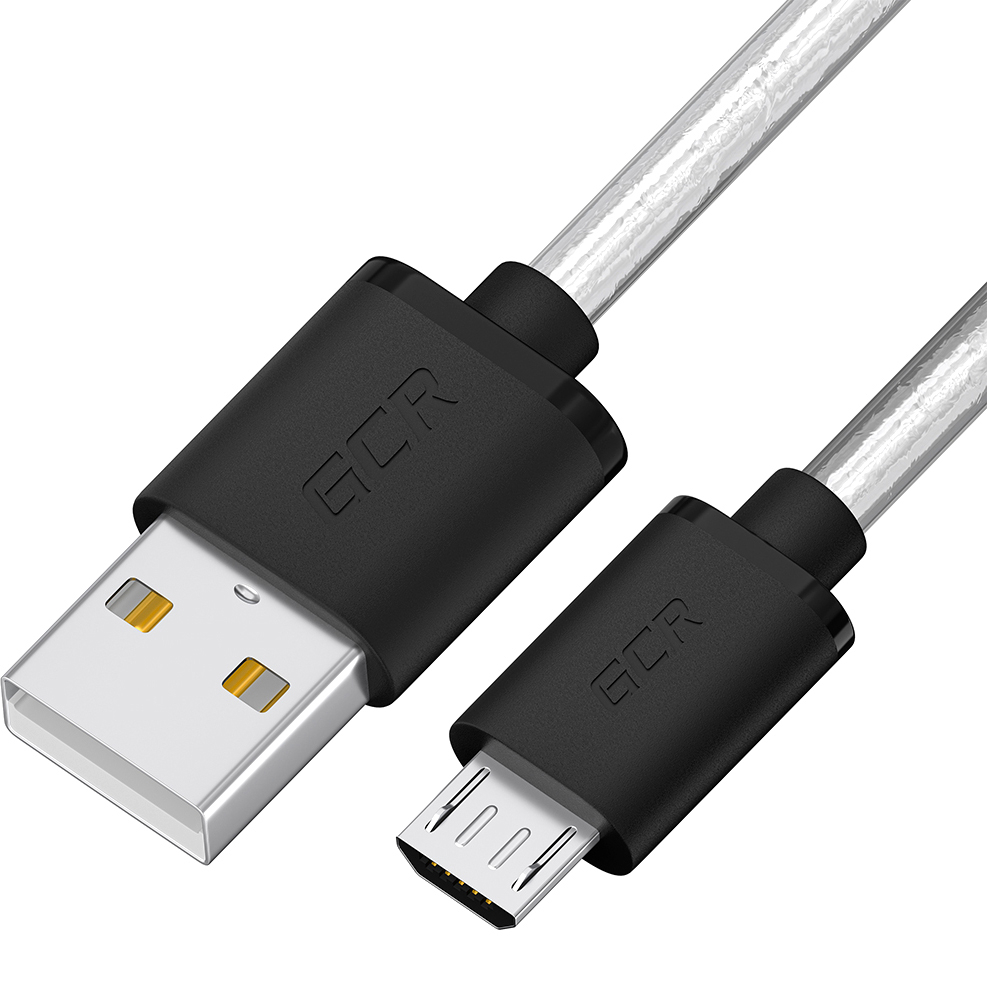 GCR Кабель 0.5m MicroUSB, прозрачный, черные коннекторы, быстрая зарядка, 28/24 AWG, GCR-54475