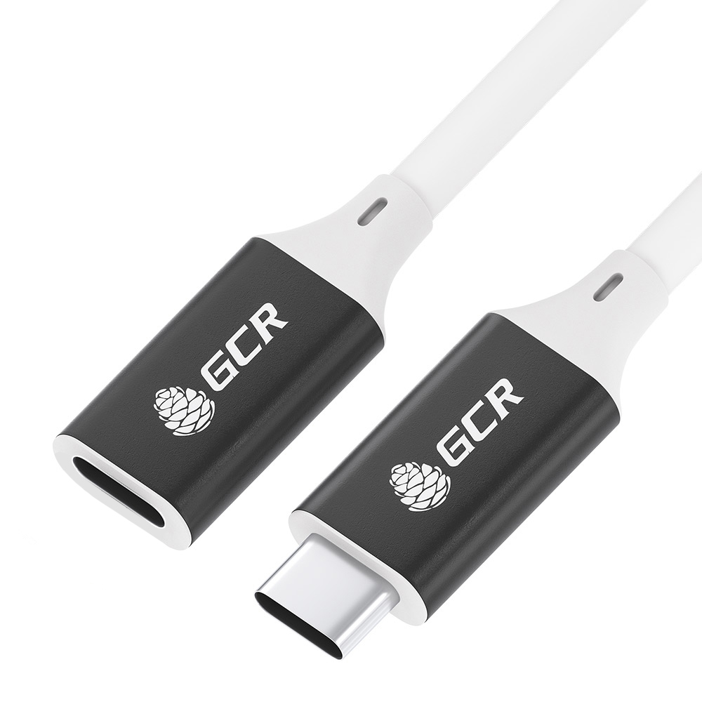 GCR Удлинитель USB 3.1 Type C-С, 0.5m белый, 100W/20V/5A, M/F, TPE, AL сase черный, белый ПВХ, экран, армированный, GCR-53732