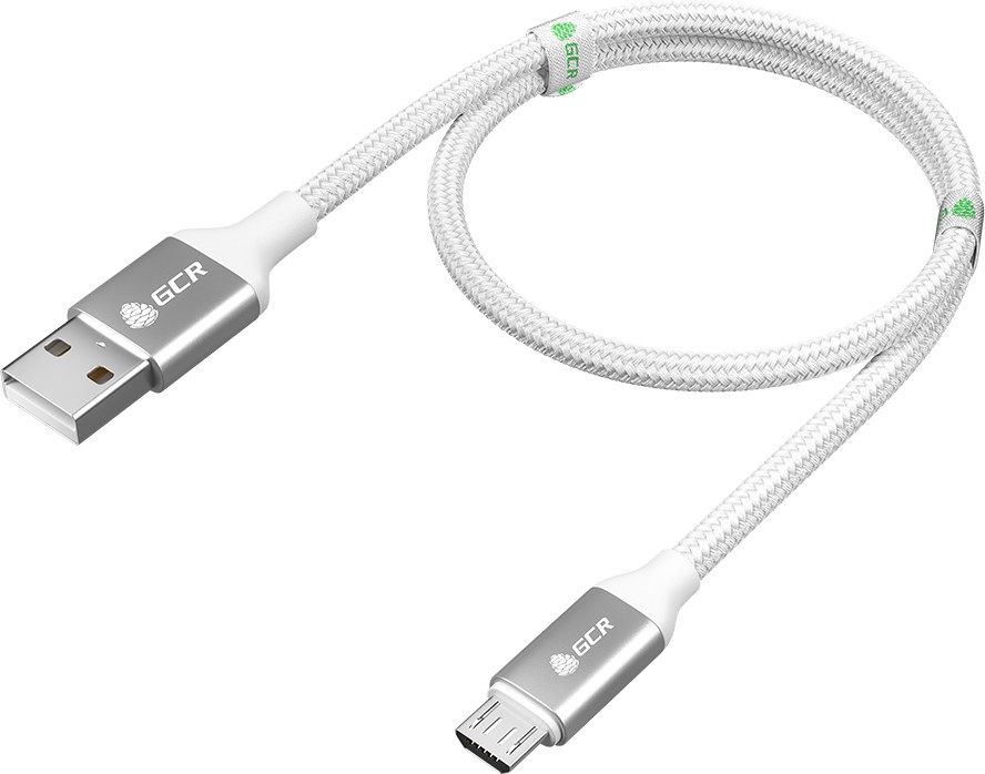 GCR QC Кабель 1.0m MicroUSB, быстрая зарядка, белый нейлон, AL корпус серебро, белый ПВХ, 28/24 AWG, GCR-52468