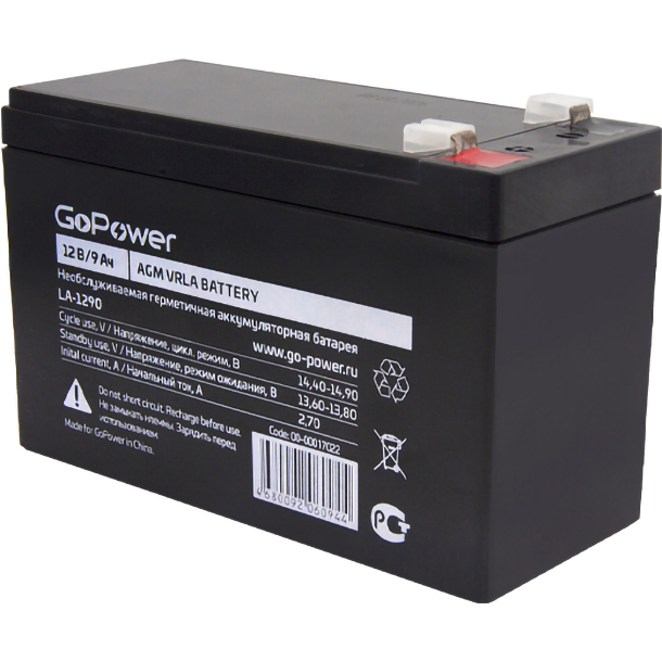 Аккумулятор свинцово-кислотный GoPower LA-1290 12V 9Ah (1/5)