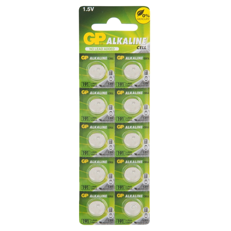 Алкалиновые пуговичные батарейки GP 191A - 10 шт., каждая в своем отрывном блистере