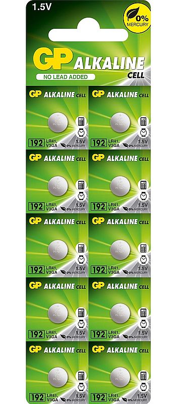 Алкалиновые пуговичные батарейки GP 192A - 10 шт., каждая в своем отрывном блистере