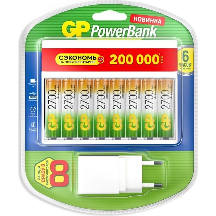 Представьте, что Вам нужно одновременно зарядить аккумуляторы для видеоняни, радиоуправляемого вертолета, вибромассажера и беспроводной клавиатуры. Да, в большой семье порой возникают неразрешимые задачи! Без паники: зарядное устройство GP 270AAHC/CPBXL-2CR8 сэкономит родителям массу времени и сил и избавит от регулярных затрат на запасные батарейки. И никто не расстроится от того, что не работает любимая игрушка. А главное, не нужно планировать, что и в каком порядке вам заряжать!- Работает везде, где есть USB. Универсальный USB-адаптер позволяет решать ваши задачи даже там, где нет розетки - например, в автомобиле или аэроэкспрессе.- Много. Быстро. Эффективно. До 8 полностью заряженных аккумуляторов за 8-10 часов. Идеальный вариант для дома, где много мощных детских игрушек или других устройств.- «Все включено» для разных типоразмеров одновременно. 4-канальная система зарядки позволяет одновременно заряжать 2, 4, 6 или 8 аккумуляторов типов АА или ААА.- Два режима - быстрый и медленный. В режиме «Lo» аккумуляторы ёмкостью меньше или равно 1300 мАч (1.2В) для АА и меньше или равно 700 мАч (1.2В) для ААА зарядятся за 4 часа. Режим «Hi» зарядит аккумуляторы ёмкостью больше 1300 (1.2В) мАч для АА и больше 700 (1.2В) мАч для ААА за 8 часов.- Контроль безопасности. Переключатель выбора емкости предотвращает перезарядку и перегрев. Все аккумуляторы в безопасности!- Суперэкономично. Одна из самых доступных моделей с такими характеристиками. U811 делает пользование аккумуляторами удобным. При этом каждая пара аккумуляторов заменяет до 500 пар обычных батареек - а значит, экономит до 100 тысяч рублей!- Забота о Вас и о планете. Одноразовые батарейки - опасный отход: попадая в природу, они отравляют тяжелыми металлами почву и грунтовые воды. Используя аккумуляторы, Вы снижаете нагрузку на окружающую среду в несколько сотен раз.
