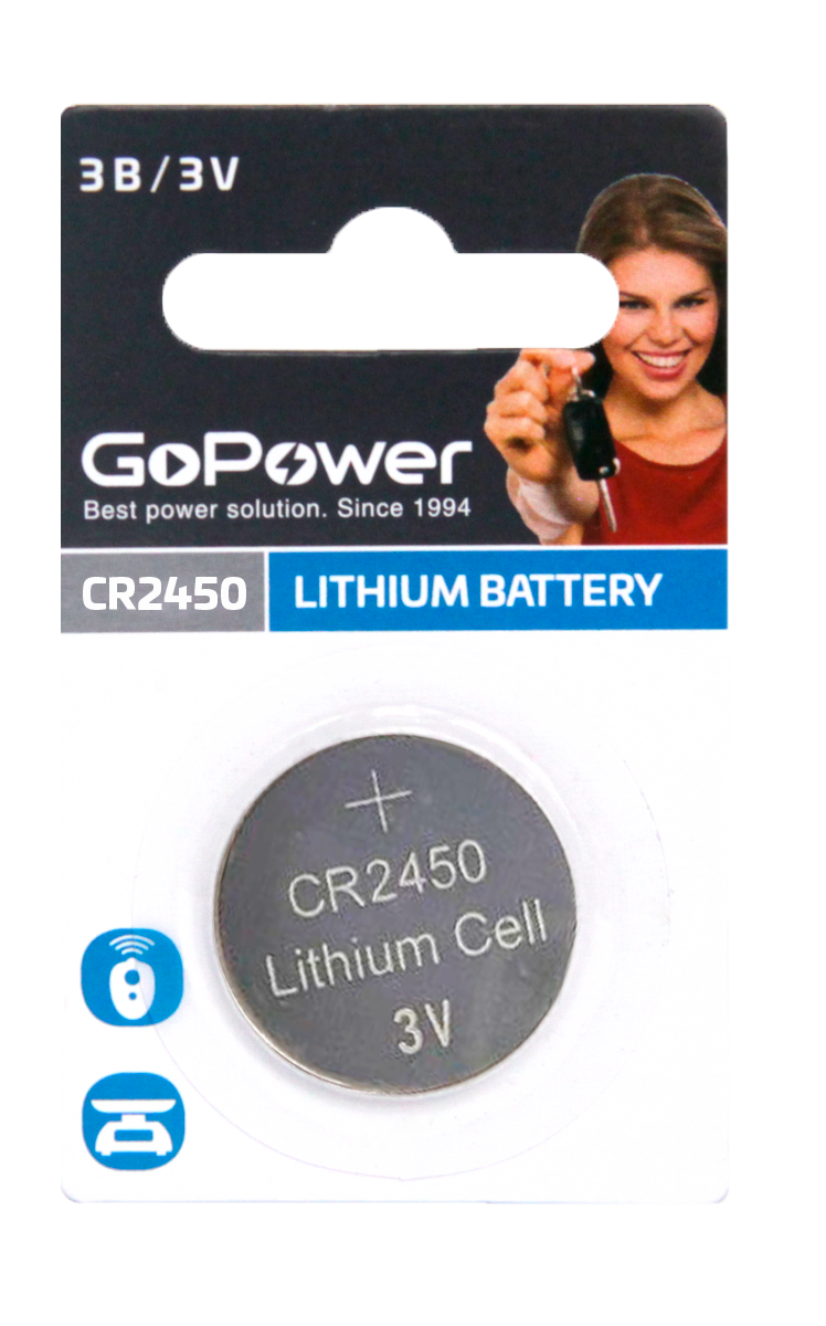 Батарейка GoPower CR2450 BL1 Lithium 3V (1/40/2000) (1 шт.)