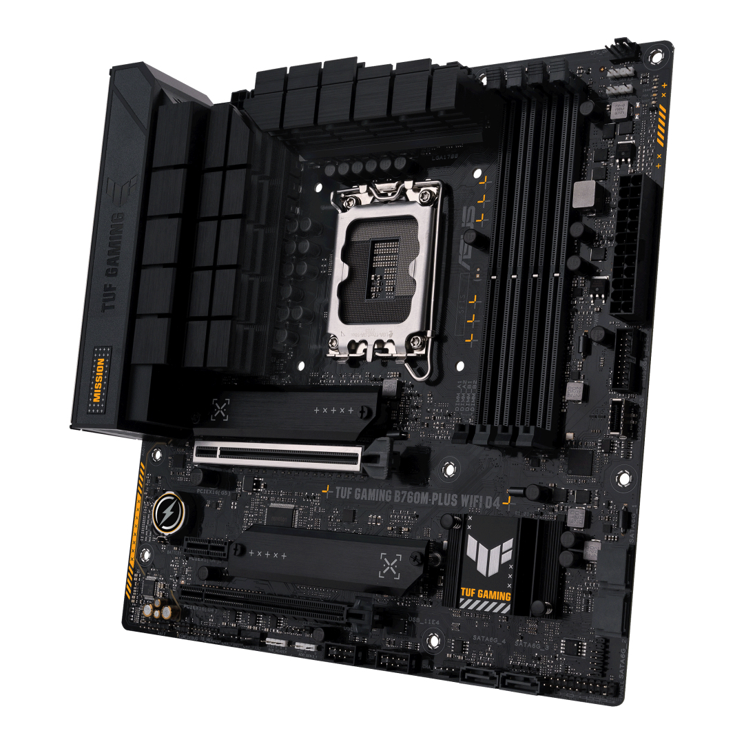 TUF GAMING B760M-PLUS D4 сочетает в себе все основные элементы новейших процессоров Intel® с игровыми функциями и проверенной надежностью. Эта материнская плата, разработанная с использованием компонентов военного класса, модернизированного решения по питанию и комплексной системы охлаждения, превосходит все ожидания благодаря невероятно надежной производительности для игрового марафона. Материнские платы TUF GAMING также проходят строгие испытания на выносливость, чтобы убедиться, что они могут работать в условиях, в которых другие могут выйти из строя. Эстетически эта модель включает в себя рельефную табличку и элементы геометрического дизайна, отражающие надежность и стабильность, характерные для серии TUF GAMING.