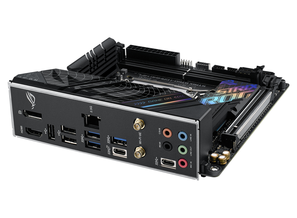 Огромная пропускная способность проходит через ROG Strix B760-I через передовые сетевые адаптеры и USB-разъемы с высокой пропускной способностью, что позволяет вам играть в игры без помех, а кристально чистый встроенный звук позволяет вам полностью погрузиться в процесс.