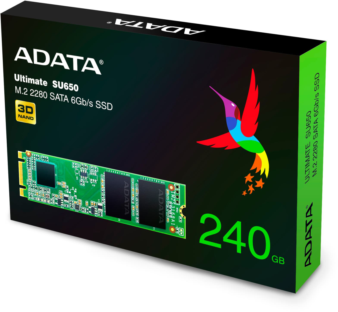 Твердотельный накопитель/ ADATA SSD Ultimate SU650, 240GB, M.2(22x80mm), SATA3, 3D TLC, R/W 550/500MB/s, IOPs 80 000/60 000, TBW 140, DWPD 0.5 (3 года) Bulk
