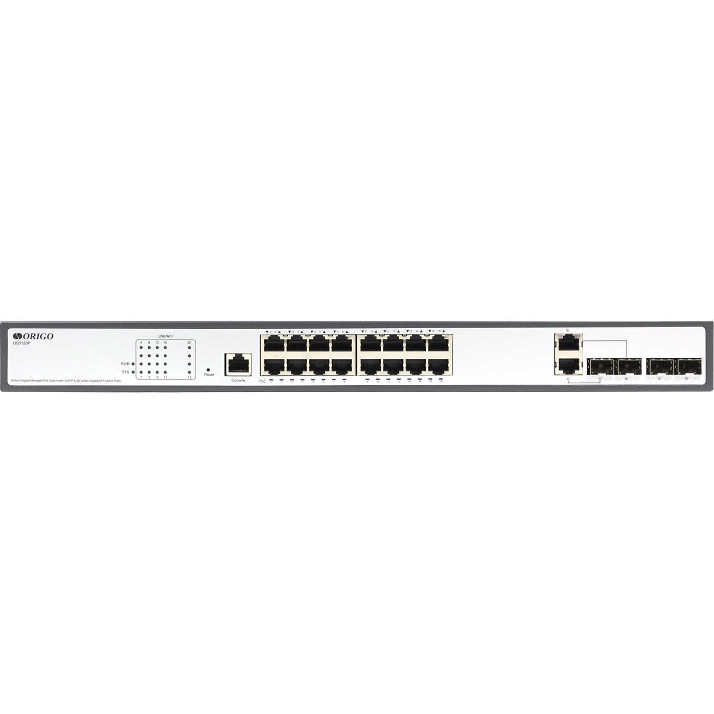 Managed L2 Switch 16x1000Base-T PoE, 2x1000Base-X SFP, 2xCombo 1000Base-T/SFP, PoE Budget 250W, RJ45 Console, 19" w/brackets