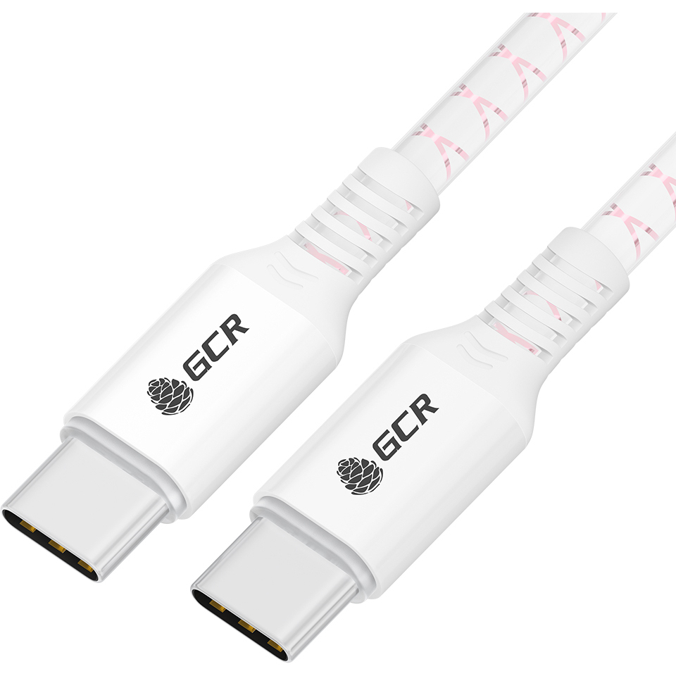 GCR Кабель 1.5m Type C-C POWER DELIVERY 18 W, бело-розовый, AL case белый, белый ПВХ, GCR-54535