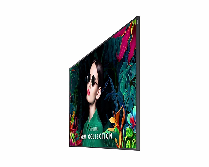 Тонкий дизайн. Великолепные характеристики Представляем QMC-серию дисплеев с разрешением UHD- самую тонкую в линейке профессиональных дисплеев Samsung. Она привнесет элегантность в бизнес и не будет занимать лишнего места в интерьере. Усовершенствованное меню и интуитивно понятный интерфейс пользователя упрощают использование экрана. Предприятия из разных сфер бизнеса могут улучшить свою работу благодаря оптимальным характеристикам и инновационному дизайну профессиональных дисплеев серии QMC. Сверхтонкий дизайн Дисплеи серии QMC отличаются самым тонким дизайном в линейке (глубина всего 28,5 мм). Они совместимы с настенными креплениями Slim Fit, что позволяет легко, быстро и с минимальным отступом от стены устанавливать экраны в любом интерьере. Благодаря своему элегантному дизайну, профессиональные дисплеи серии QMC оптимизируют пространство и органично впишутся в вашу бизнес-среду. Симметричная тонкая рамка Экран обрамлен рамкой одинаковой ширины со всех четырех сторон. Новый дизайн рамки с одной и той же шириной позволяет сделать симметричным вид дисплея даже при изменении его ориентации с альбомной на портретную. Центрированные отверстия для VESA кронштейна Центральное расположение отверстий для VESA кронштейна на обратной стороне дисплея обеспечивает оптимальный баланс его веса для надежного крепления. Теперь, когда отверстия VESA смещены к центру дисплея, пользователи могут эксплуатировать дисплеи в портретном режиме без риска поворота экрана в сторону. Технология Dynamic Crystal Color Погрузитесь в изображение с миллиардом цветовых оттенков. Технология Dynamic Crystal Color обеспечивает естественность передачи тончайших цветовых оттенков. Quantum Processor Lite 4K Ведущая в отрасли технология обработки видео, разработанная компанией Samsung, доводит до совершенства качество отображения каждого фрагмента изображения. Интеллектуальная технология апскейлинга, обеспечиваемая процессором Quantum Processor Lite 4K, позволяет преобразовать видеоконтент низкого разрешения до уровня UHD, что соответствует уровню профессионального качества. Антибликовый экран Дисплеи серии QMC оснащены долговечными небликующими панелями, которые отличаются улучшенной видимостью информации под любым углом к панели в любое время суток. Антибликовый экран позволяет обеспечить точную передачу информации потребителю в условиях, где ее точность является критически важной, например, в аэропортах и железнодорожных вокзалах. Интерфейс Home UI Дисплеи серии QMC отличаются большим удобством использования благодаря обновленному пользовательскому интерфейсу главного экрана. Такие часто используемые категории как «Избранное», «Источники» и «Настройки» для удобства доступа отображаются на одном экране. Папка «Избранное» предоставляет пользователям быстрый и легкий доступ к популярным функциям одним кликом. Функция SmartView+ Функция SmartView+ активирует совместное использование дисплея в беспроводном режиме без кабельных соединений, обеспечивая совместную работу нескольких пользователей. Пользователи теперь могут активировать функцию совместного использования экрана в начале совещания одним кликом. Smart калибровка Гарантирует полную идентичность визуальных параметров дисплеев, находящихся в одном или разных помещениях. Использование мобильного приложения Samsung Smart Calibration гарантирует, ч