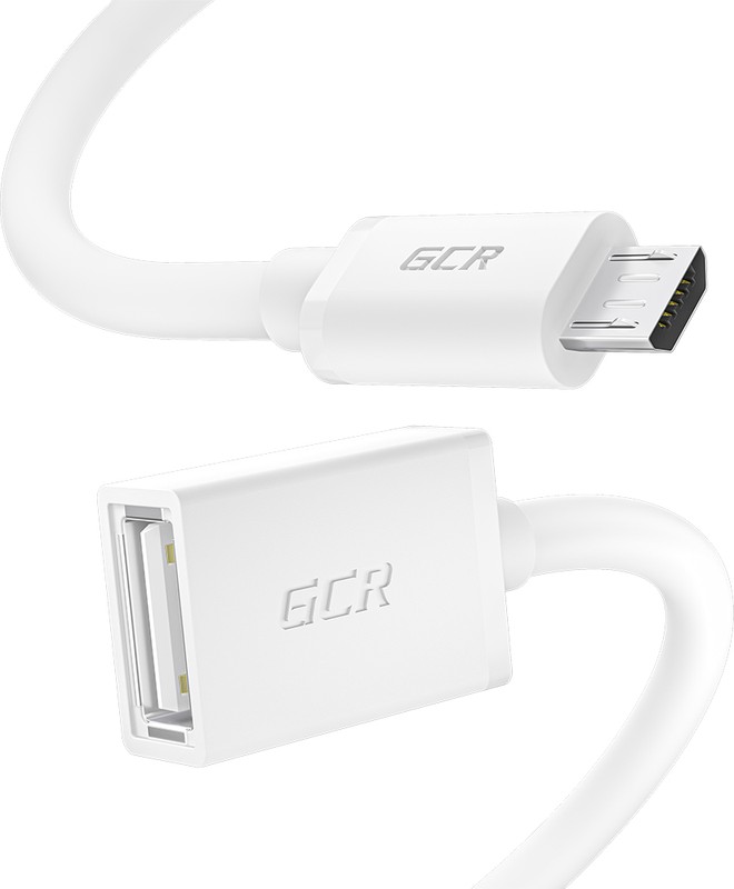 GCR Адаптер переходник OTG 1.0m USB, microB 5pin/AF, белый, 28/28 AWG, экран, морозостойкий. GCR-52209