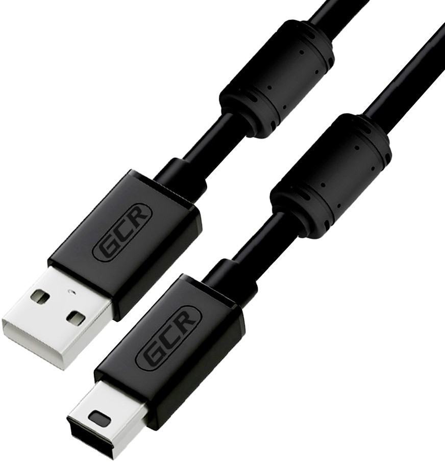 GCR Кабель 1.5m USB 2.0, AM/mini 5P, черный, ферритовые кольца, 28/28 AWG, экран, армированный, морозостойкий, GCR-51177