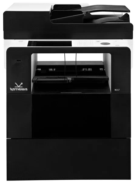МФУ Катюша М247eрПечать формата А4.Разрешение печати 1200 x 1200 dpi.Цветность Монохром.Однопроходный высокоскоростной автоподатчик документов.Автоматические двусторонняя печать и копирование.Удобная и понятная полноцветная сенсорная панель управления.Уникальная функция сканирования и копирования документов А3.Цифровая кнопочная клавиатура позволяет осуществлять управление даже в перчатках.Надёжный тракт протяжки с системой автоматической очистки от бумажной пыли.Подающая кассета вмещает пачку бумаги (до 500 листов плотностью 80 г/м2).Автоматическое определение формата бумаги в основном лотке.Работа на носителях отечественного производства, включая бумаги класса «А», «B» и «С», а также писчие бумаги.Прямая печать с USB-накопителей.Сканирование на USB-накопители.Унифицированные расходные материалы между принтером и МФУ серии "Катюша 247".Возможность установки встроенного ПО «Смарт Принт».Поддержка печати по qr-коду.