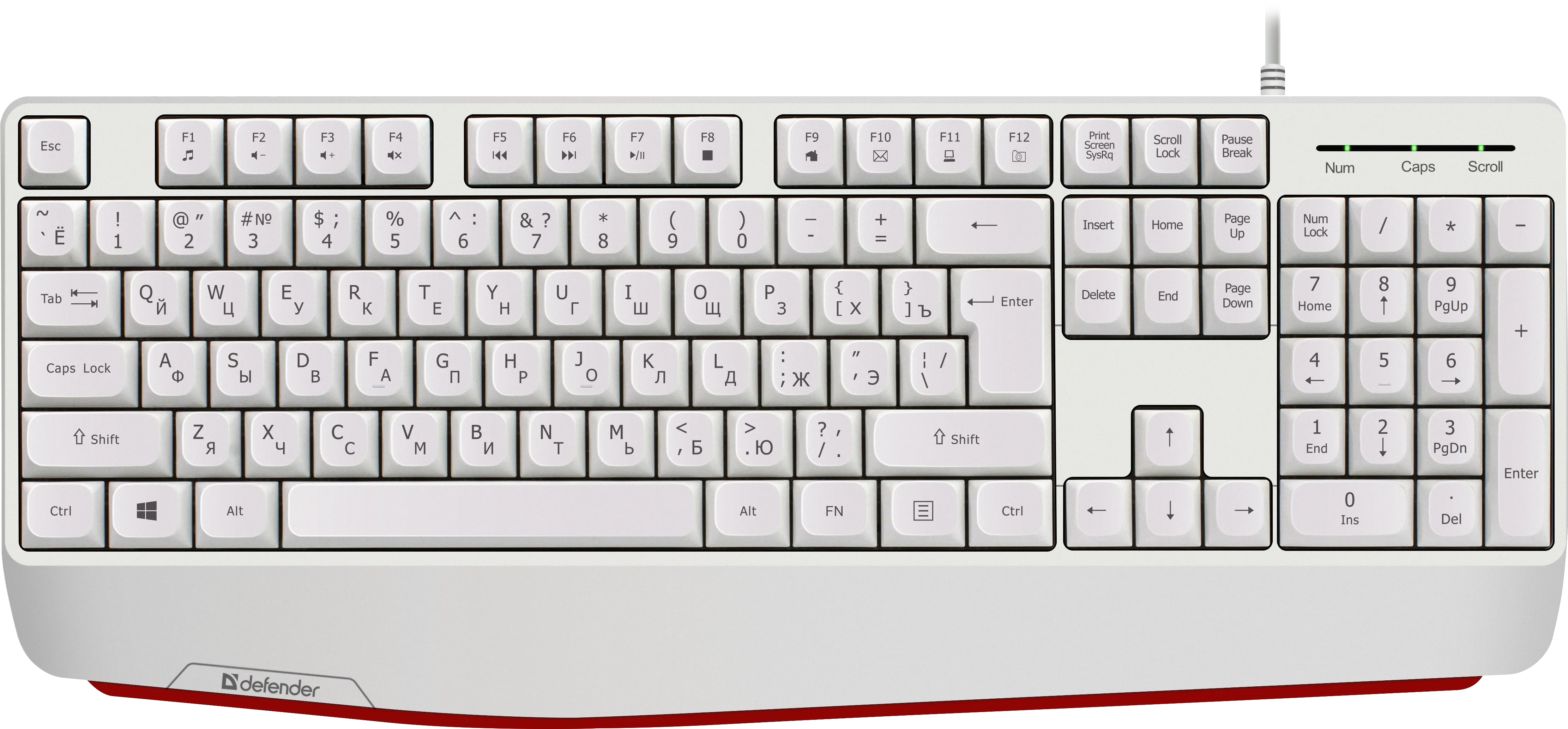 Defender Проводная клавиатура Atom HB-546 RU,белый,104+FN,1.8м
