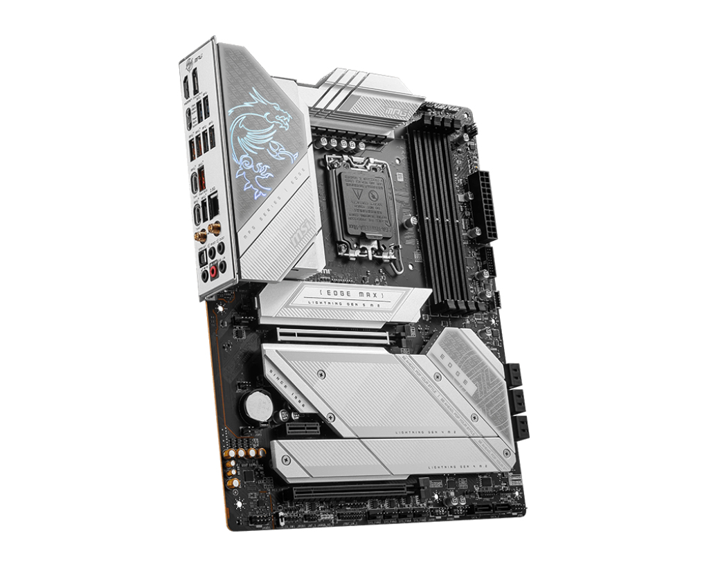 Выполненная в серебристо-белых цветах, материнская плата MPG Z790 EDGE TI MAX WIFI придется по вкусу любителям белоснежных компьютеров, которые хотят собрать ATX-конфигурацию с процессором Intel Core 14-го или 13-го поколения. Красивый внешний вид сочетается в ней с богатой функциональностью, в которой можно выделить беспроводной модуль Wi-Fi 7, оптимизированную разводку слотов DDR5 и интерфейс M.2 с режимом PCIe 5.0 и охлаждением M.2 Shield Frozr.