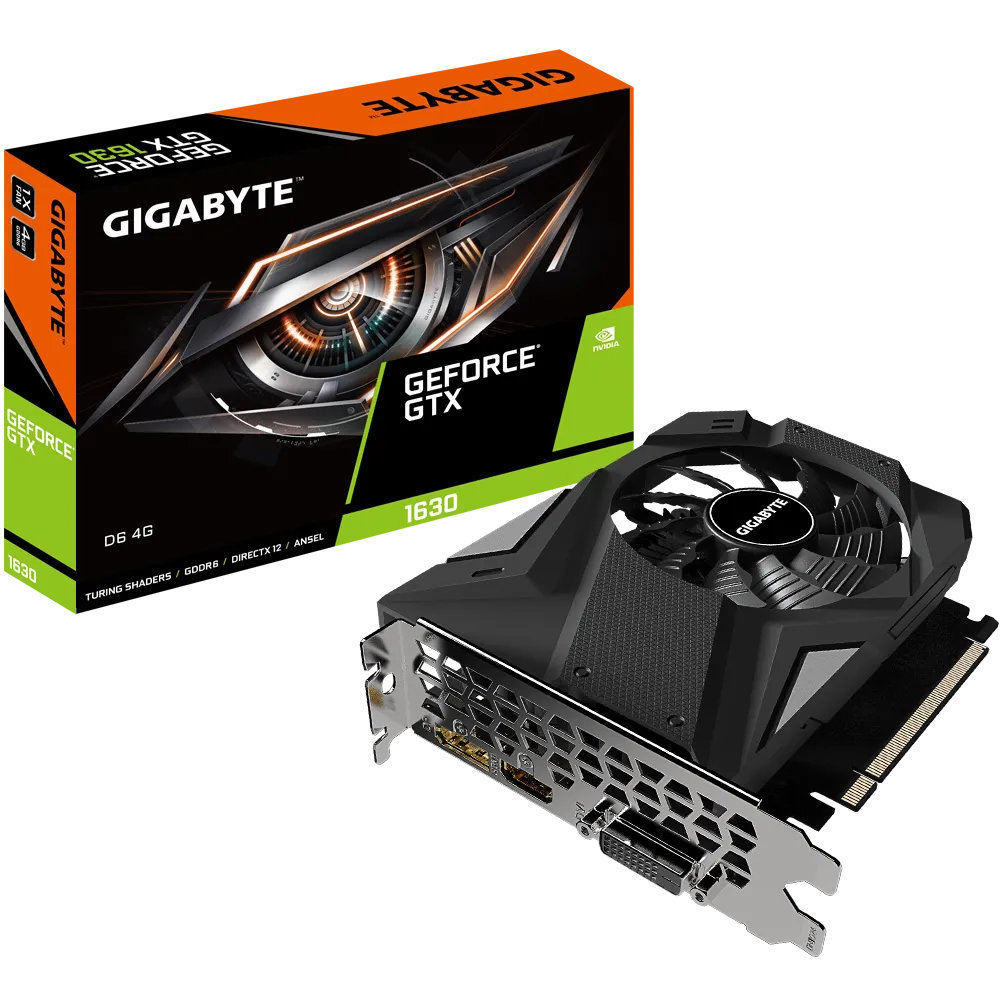 Графический процессор GeForce® GTX 1630Микроархитектура NVIDIA Turing™, фирменное приложение NVIDIA GeForce Experience™Встроенное видеоОЗУ GDDR6 объемом 4 Гбайт, 64-разрядная шина памяти80-мм вентилятор с уникальным профилем лопастей крыльчаткиКомпактные габариты