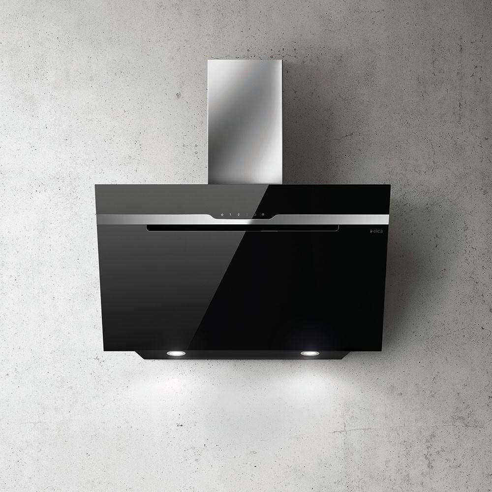Вытяжки ELICA/ Кухонный эксклюзив.Пристенная наклонная, 90 см, 1200 куб.м., сенсорное управление, черное стекло