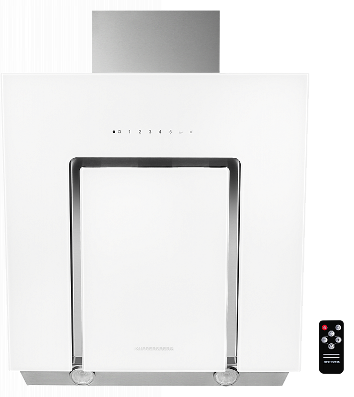 Настенная вытяжка, ширина 60 см, отвод/рециркуляция, 900 м3/час, сенсорное управление, таймер, 5 скоростей, галогенное освещение 2х20 Вт, металлические жироулавливающие фильтры, угольный фильтр KF-СM (опция), 42-47 дБ, цвет белое стекло SCHOTT