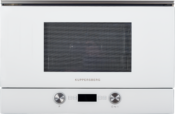 Встраиваемая микроволновая печь, электронное управление, 14 автоматических программ, функция запоминания для 3 режимов, 5 уровней мощности, функция автоматической и ручной разморозки, таймер на 90 минут, камера из нержавеющей стали, блокировка от детей, объем 22 литра, цвет: белый / полностью стеклянный фасад
