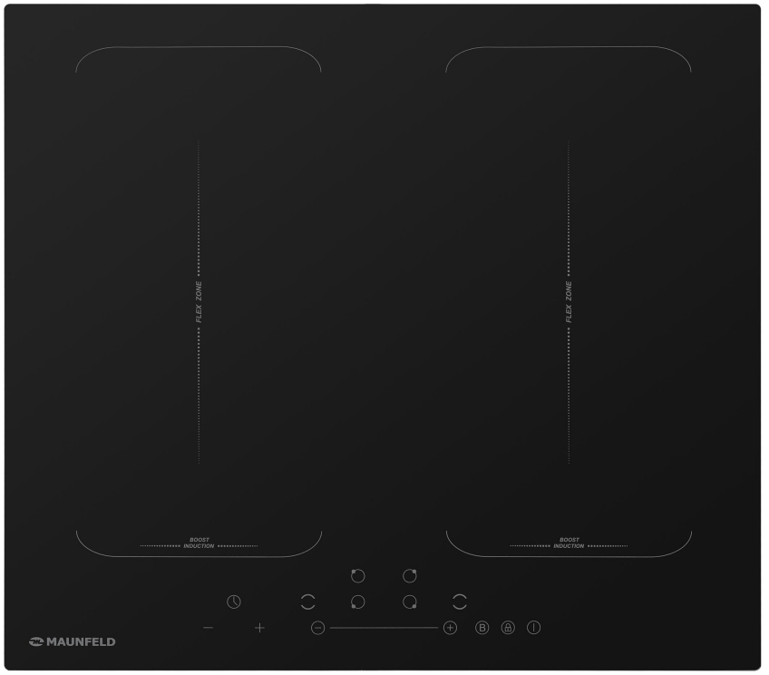 Варочная панель Maunfeld EVI.594-FL2-BK имеет встроенный таймер для каждой конфорки с функцией автоматического отключения через заданное время или просто звуковым сигналом.