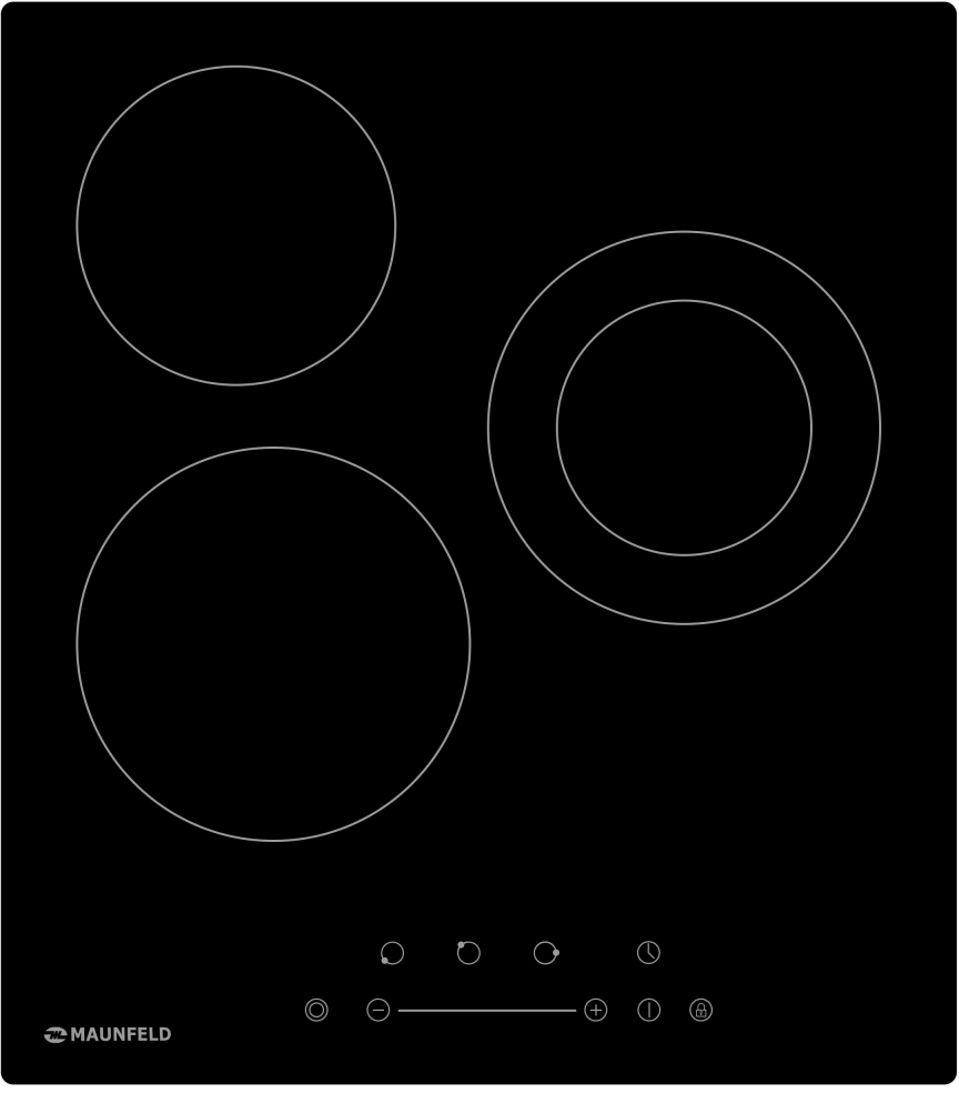 Для вашей безопасности, варочная панель Maunfeld EVCE.453.D-BK отключится, если на нее пролилась жидкость.Сенсорные кнопки можно заблокировать, чтобы дети не включили плиту самостоятельно.